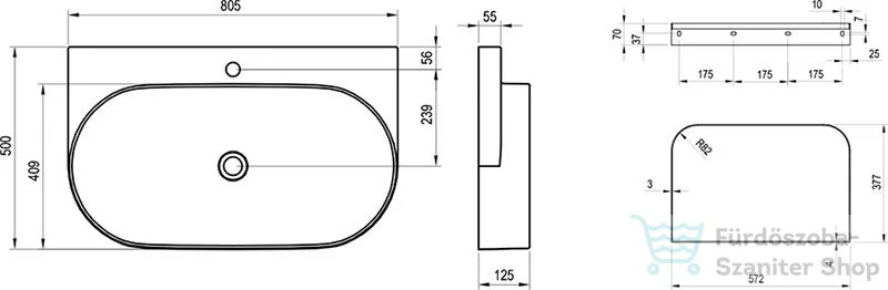 A mosdó csak a Yard 80 konzolra vagy a CS Yard 80 mosdó alatti szerkezetre szerelhető, melyeket külön lehet megrendelni.