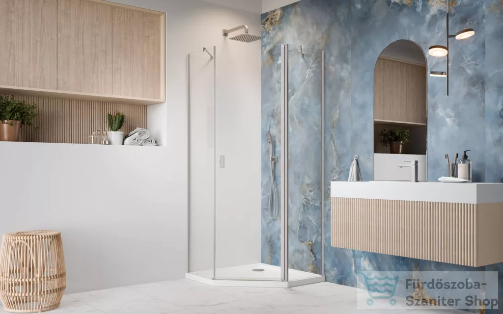 Radaway Nes PTJ 100x100J szögletes zuhanykabin, jobbos, szálcsiszolt króm 10052000-91-01R+10052100-91-01
