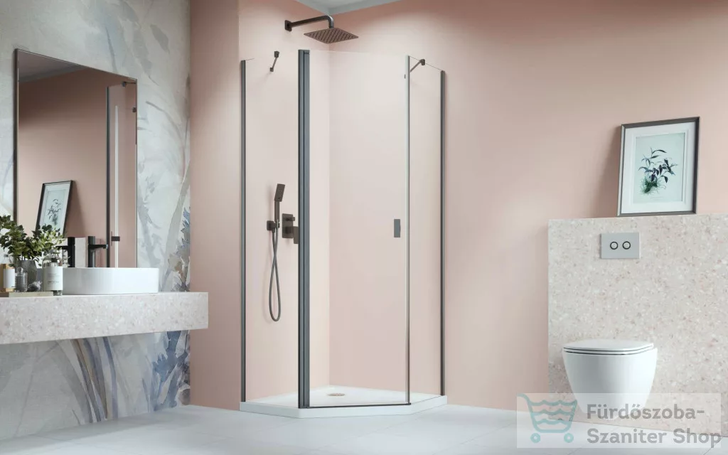 Radaway Nes PTJ 80x80B szögletes zuhanykabin, balos, szálcsiszolt fegyvermetál 10052000-92-01L+10052500-92-01