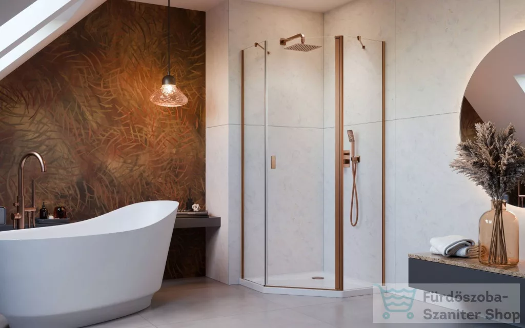 Radaway Nes PTJ 100x100J szögletes zuhanykabin, jobbos, szálcsiszolt réz 10052000-93-01R+10052100-93-01