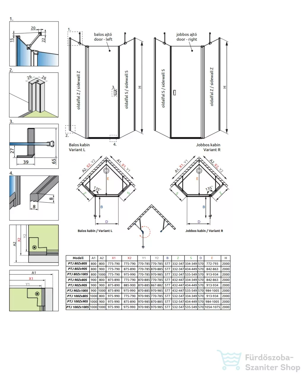 A Nes PTJ zuhanykabin 2 elemből áll: ajtó és Z, S oldalfalak. A zuhanykabin rendelésekor 2 termékkódot kell megadni.