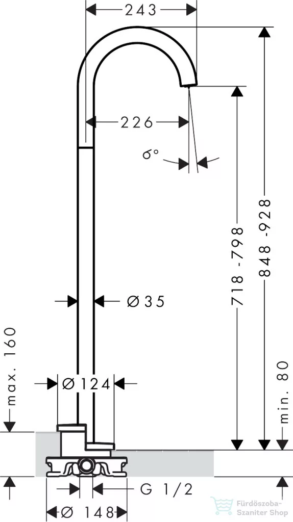 Hansgrohe AXOR Uno szabadon álló kádkifolyó alaptest nélkül, szálcsiszolt sárgaréz hatású 38412950