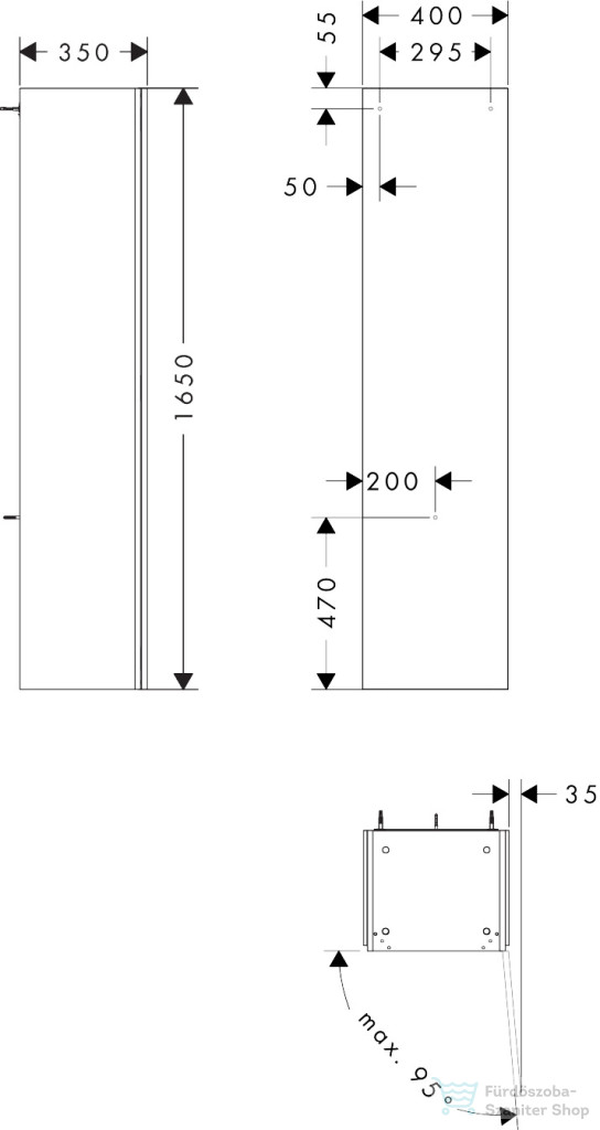 Hansgrohe XILESA E 165x40x35 cm-es magas szekrény 1 ajtóval, jobbos, matt fehér 54288700