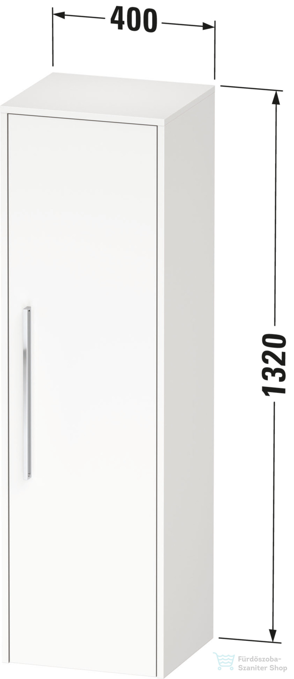 Duravit D-CODE 132x40x36 cm-es 1 ajtós félmagas szekrény króm fogantyúval, jobbos, matt taupe DC1338R10910000