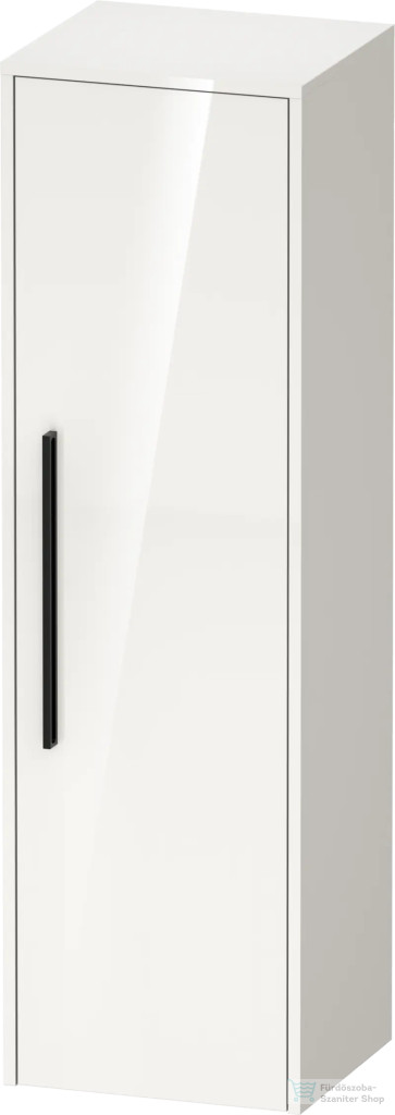 Duravit D-CODE 132x40x36 cm-es 1 ajtós félmagas szekrény fekete fogantyúval, jobbos, fényes fehér DC1338RBD220000