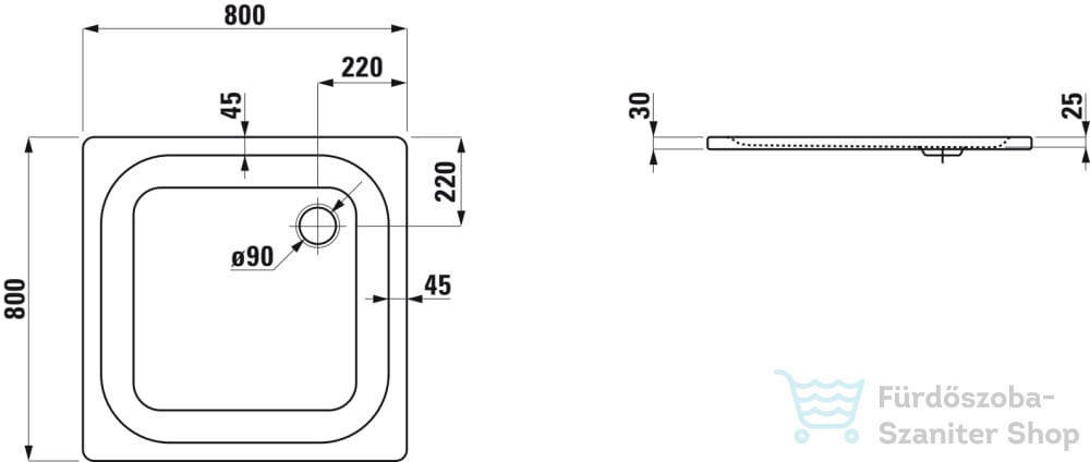 Laufen Platina 80x80 cm-es acéllemez zuhanytálca szifon nélkül, matt fehér H2150017570401