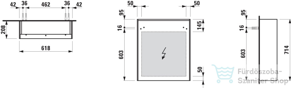 Tükrös szekrény, 60 cm, 1 ajtóval, ajtózsanér bal oldalon, vízszintes LED világítással, 2 üveg polccal, 1 dugaljjal