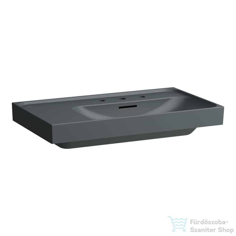 Laufen MEDA 80x46 cm-es falra/bútorra szerelhető mosdó 3 csaplyukkal, bal oldali pulttal, matt graphite H8171157581081