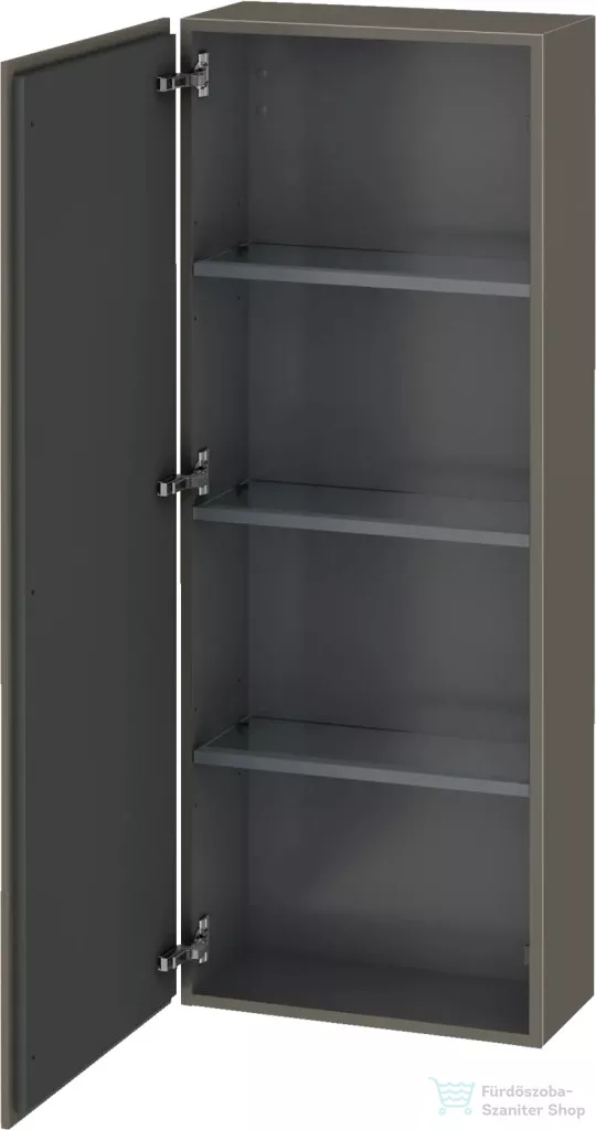 Duravit L-CUBE 132x50 cm-es, 1 ajtós félmagas szekrény láb nélkül, balos, lakkozott matt szürke LC1169L9090