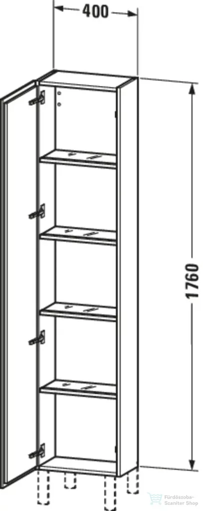 Duravit L-CUBE 176x40x24,3 cm-es, fali, 1 ajtós kiegészítő bútor láb nélkül, balos, lakkozott fényes fehér LC1170L8585